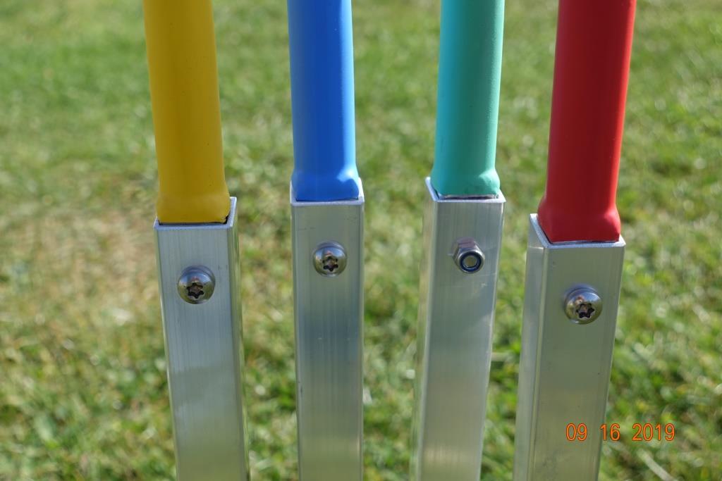 • Auf Wunsch Bögen mit Kunststoff in Farbe überzogen. Rot, Blau, Mint, Lila, Orange oder Gelb.